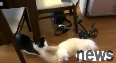 After the cat entered the owner's home, he was not polite at all and looked very familiar, as if this was his home. He patrolled the home territory with a very proud look. After seeing the owner's dog, the cat went up to the dog's face with its paw and beat the dog up. It was so overbearing and the cat had such a bad temper.