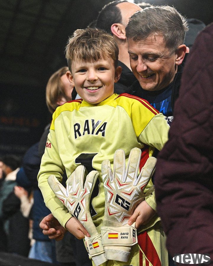 Arsenal goalkeeper Raya gave his jersey and gloves to a young fan after the game, showing his affinity.