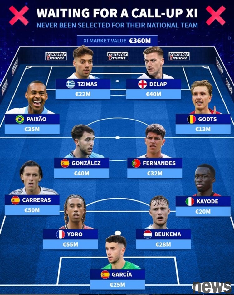 "Transfer Market" counted young players who have never been called up by the national team and listed a set of starting lineups. Many wealthy players were on the list.