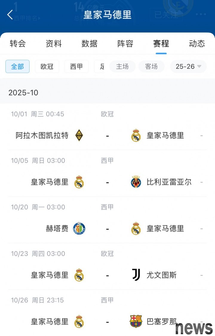 Cavajal's Champions League ban will take effect in two rounds of matches against Keirat and Juventus, and the ban will be lifted against Liverpool in the fourth round. Carvajal is currently working to recover, striving to make a comeback in the Spanish national derby at the end of October.