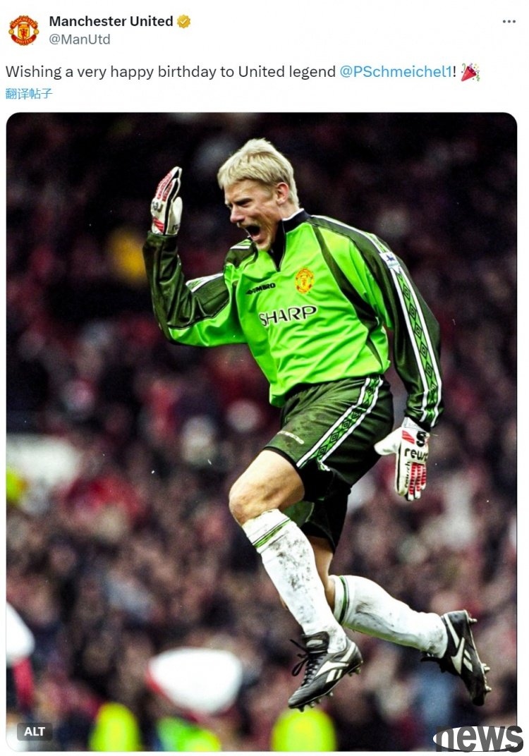 Manchester United's official social media posted photos of Schmeichel when he played for the team, with the text: "Happy birthday to Manchester United legend Schmeichel!"