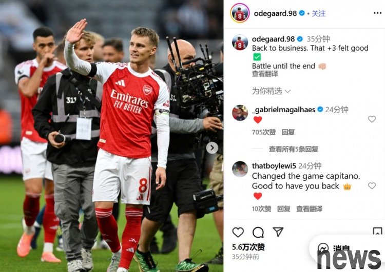 Arsenal reversed Newcastle with a 2-1 win in this round of Premier League. After the game, Odegao updated social media.