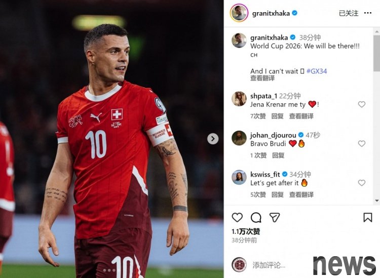 Xhaka started the game for Switzerland in this game. After the game, he posted photos of the game on social media to celebrate the team's qualification, with the text: "2026 World Cup - we are here! I can't wait."